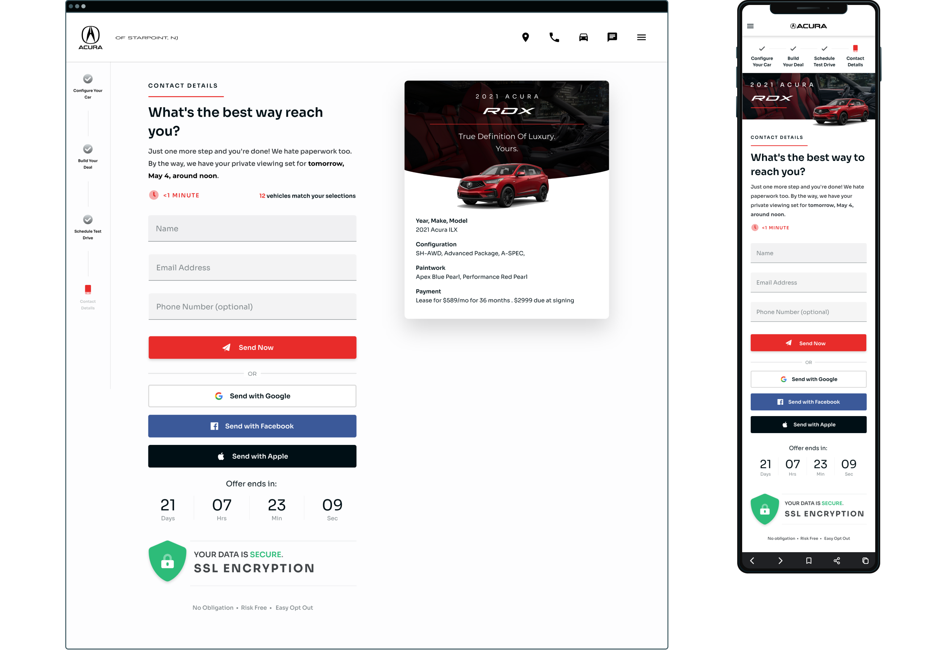 The final design featured a multi-step form that allowed shoppers to configure their car, build their deal, and book a test drive. The dealerships received these leads as rich consumer interest data, which eliminated the guesswork and expedited the 6-month sales cycle.